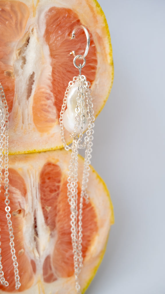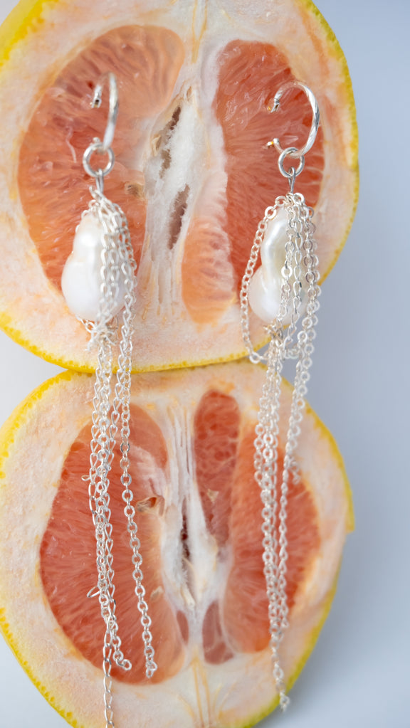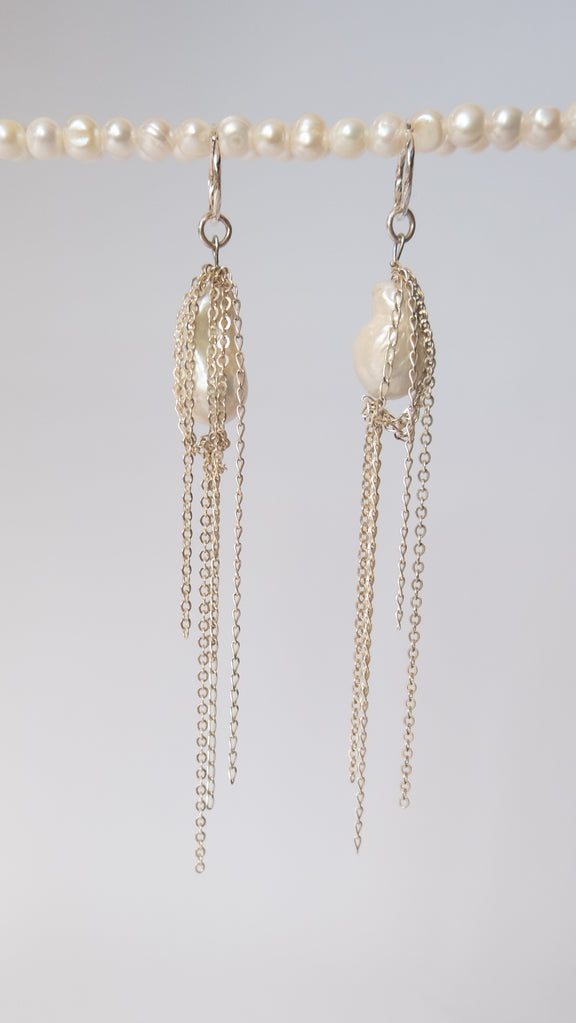 Aretes de plata con perla barroca natural.